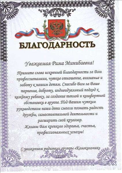 Благодарственное письмо департамента образования и молодежной политики администрации Сургутского района